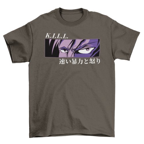Amazing t-shirt design with quote "KILL" and anime eyes in Japanese style.